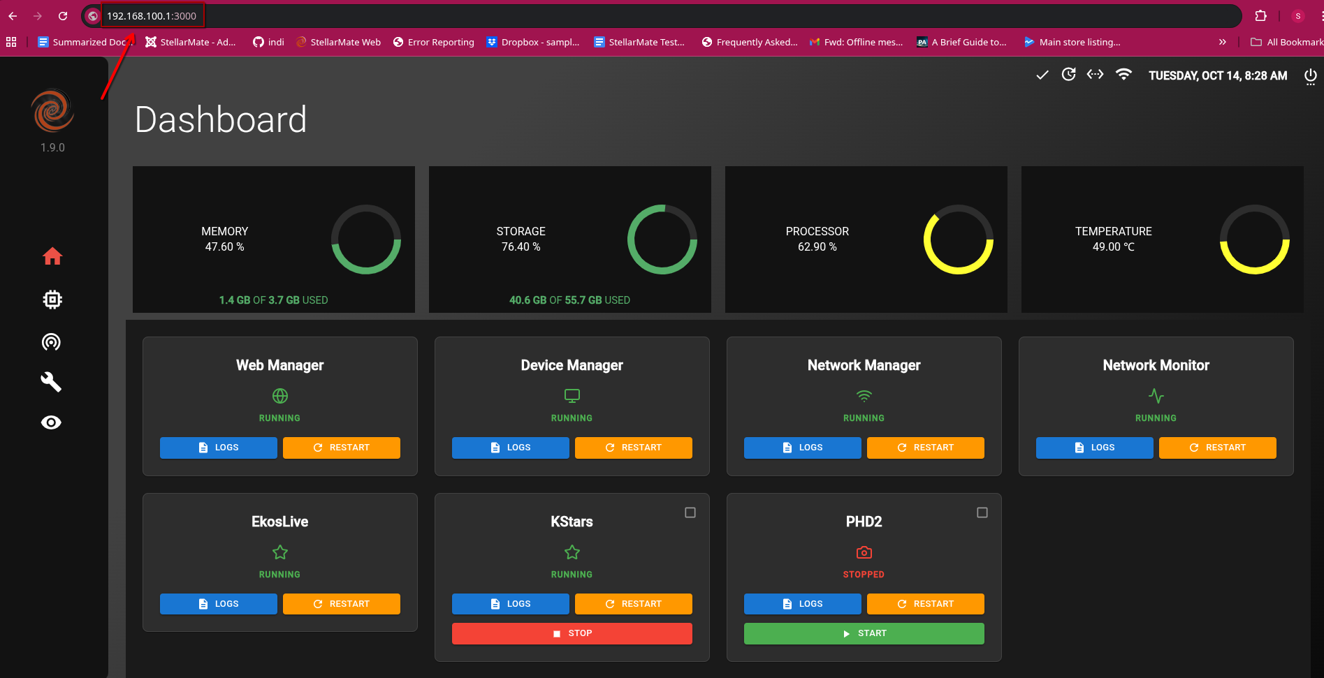 To test the connection, try to ping 192.168.100.1 (StellarMate IP) and if all is working well, you should see a response.
